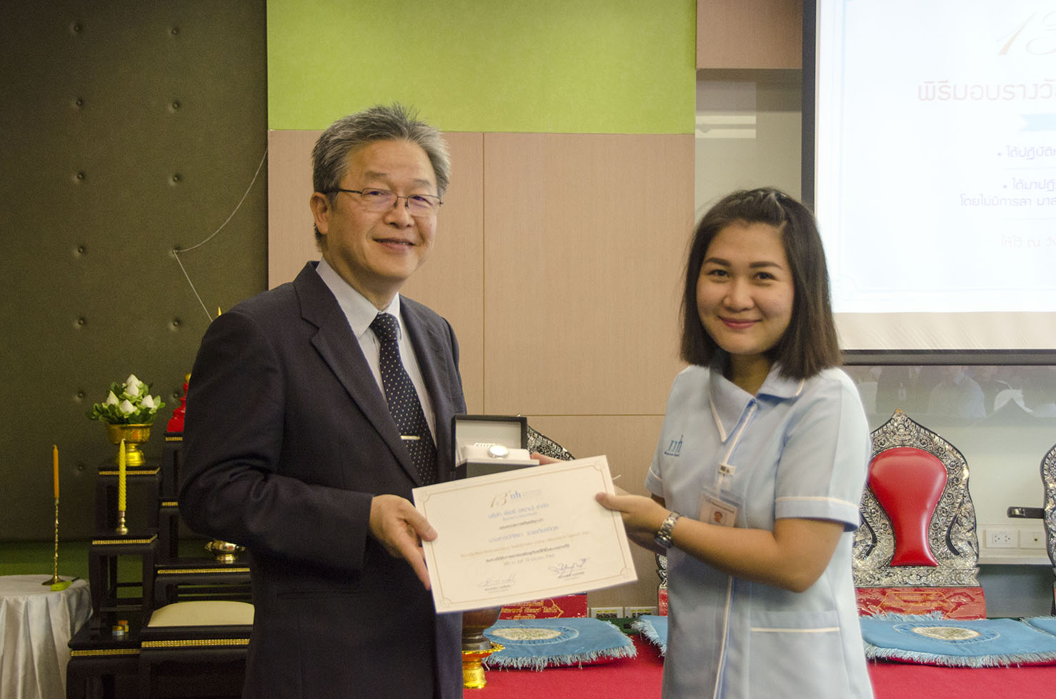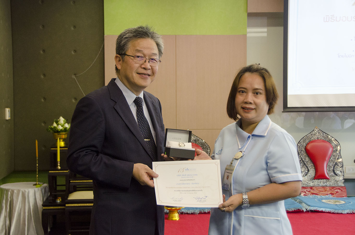 On 19th June 2019, Chantima Ongkosit Krairiksh, M.D. and Kraisit Narukhatphichai, M.D. together with staffs organized the annual merit-making to celebrate 13th anniversary.