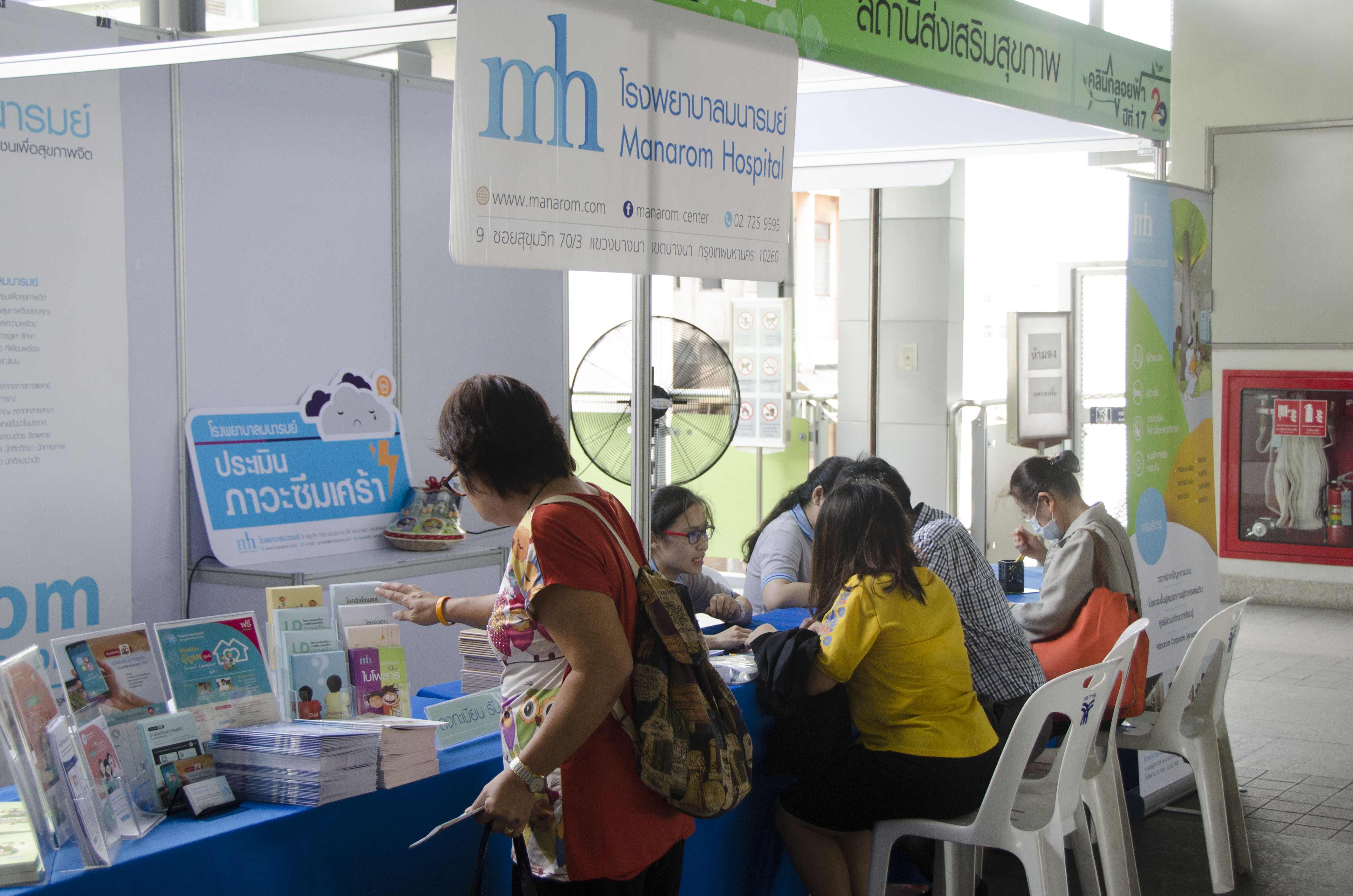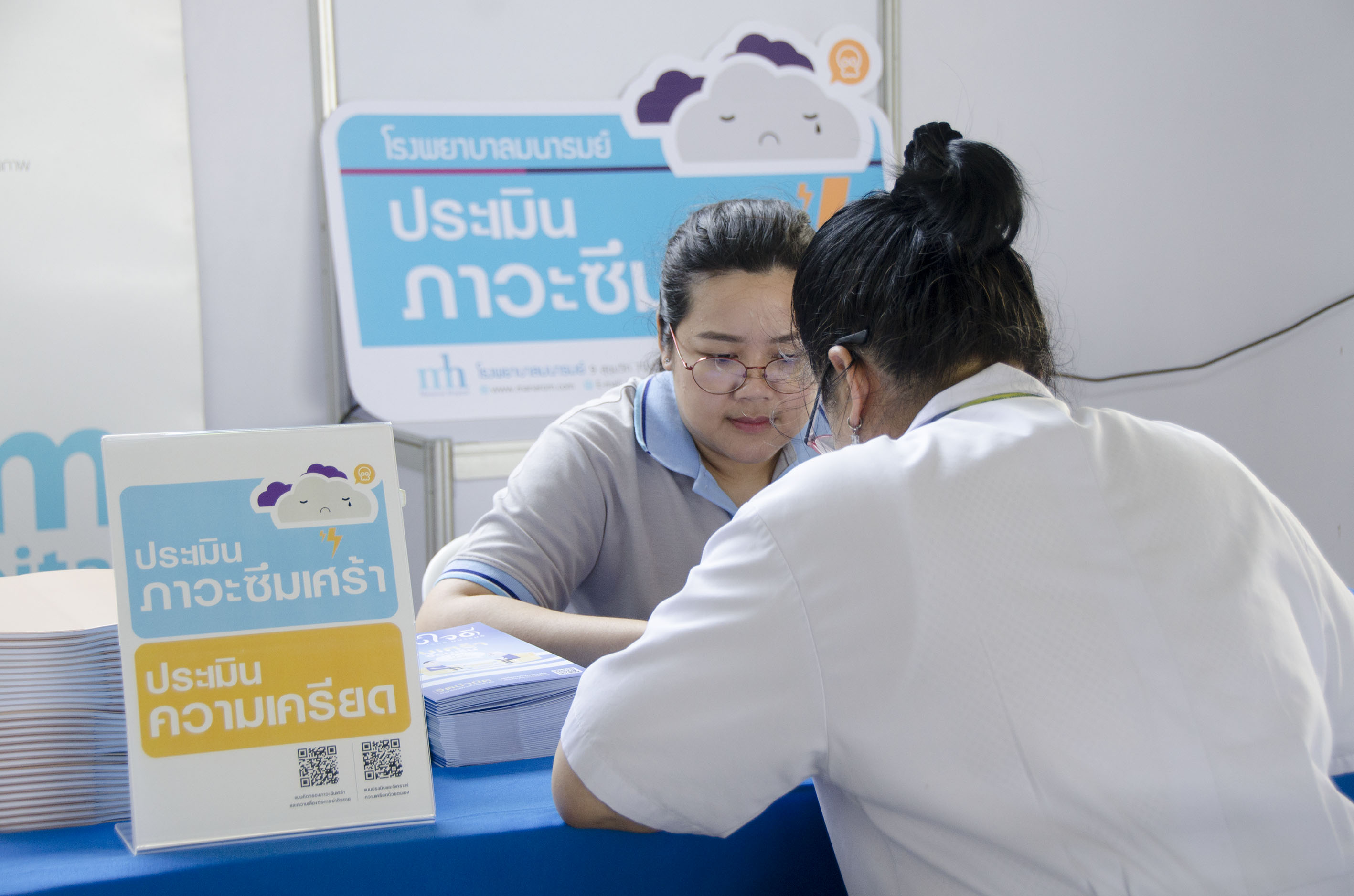 โรงพยาบาลมนารมย์ เข้าร่วมงาน คลินิกลอยฟ้า ครั้งที่ 17 ในสถานีส่งเสริมสุขภาพ เพื่อประเมินภาวะซึมเศร้าเบื้องต้น และความเครียด สำหรับบุคคลทั่วไป